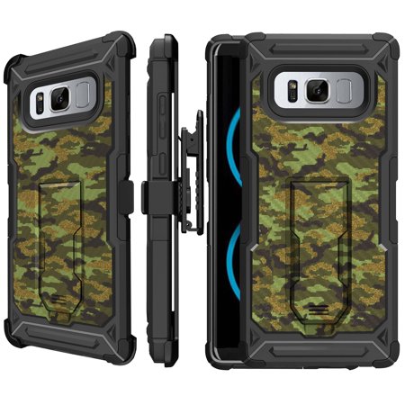 Prime-Have an effect on Observe Eight Case [UFO DEFENSE for iPHONE 8] Kickstand & Holster Case for Galaxy Observe Eight [Carbon Fiber Texture][Scratch-Protecton][Impact-Resistant Case for Note 8] - Inexperienced Virtual Camo