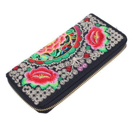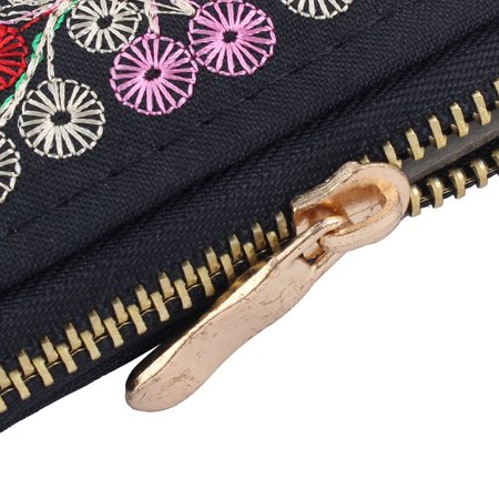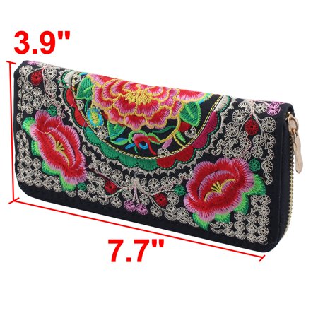 Shuttle Embroidered Flower Design Zipper Closure Pockets Handbag Card Coin Holder